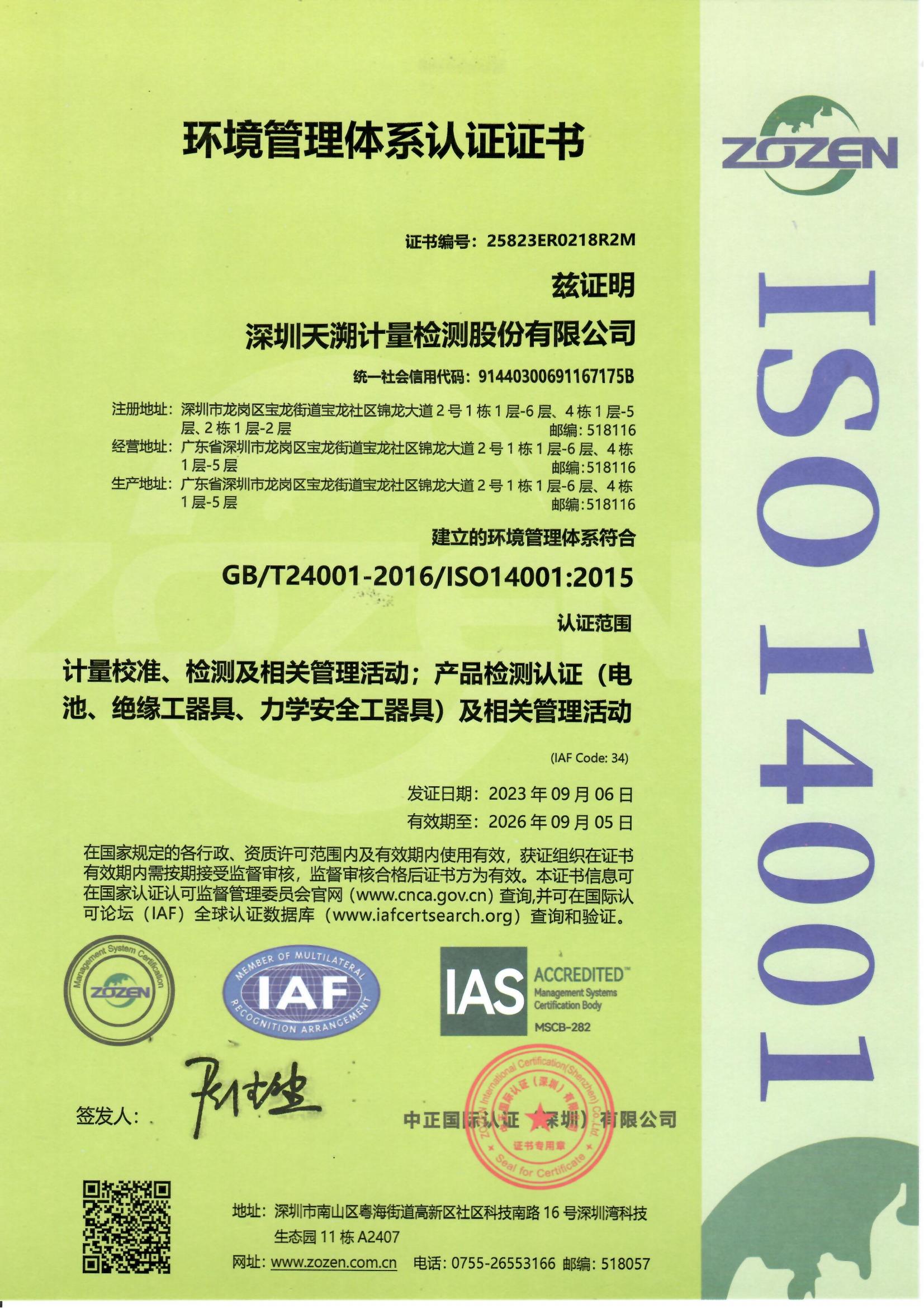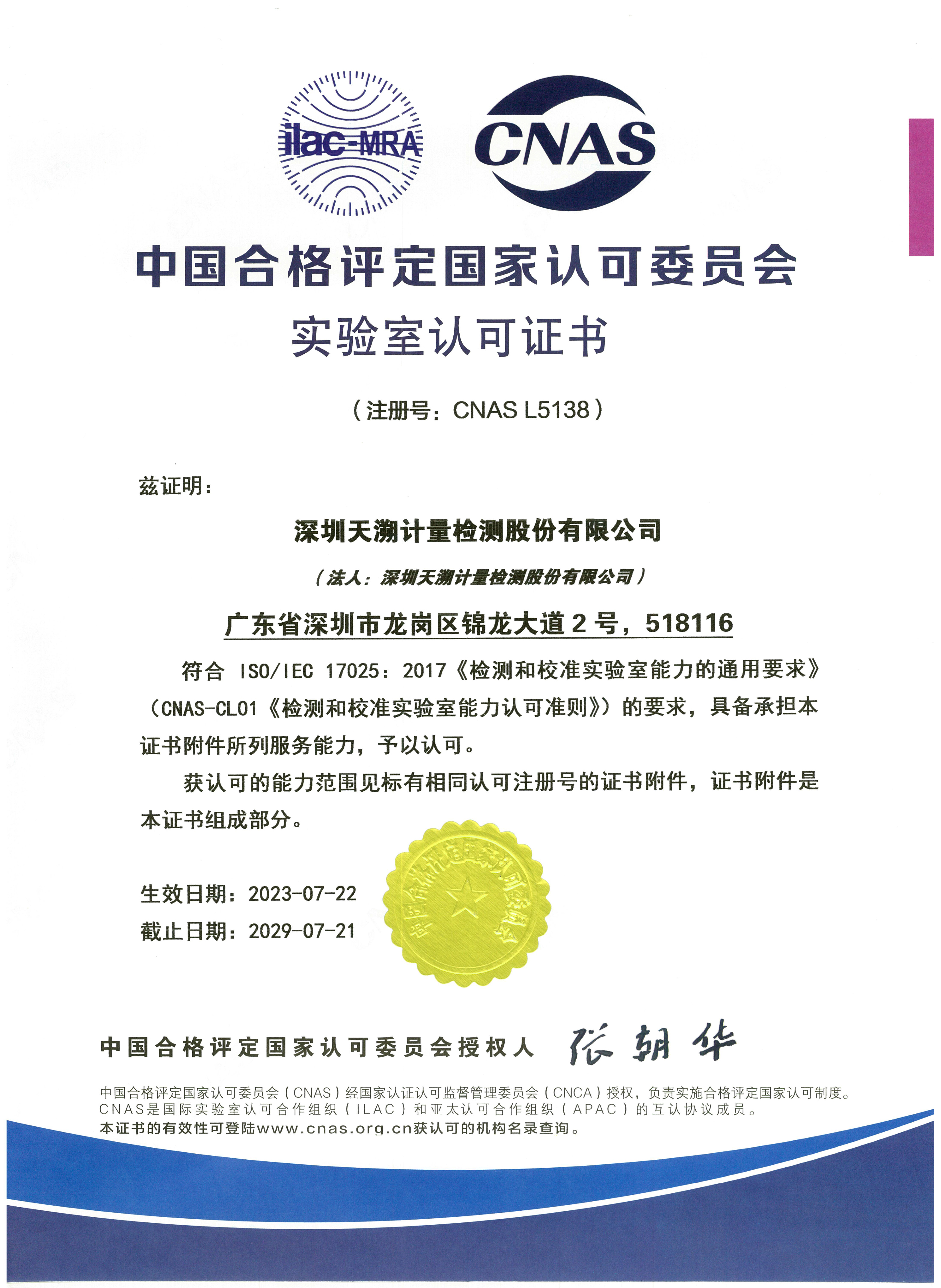天溯集團成立于2009年,14年校準及檢測行業經驗,公司員工2000多人,在全國范圍內擁有25家分公司,擁有CNAS及CMA認可實驗室23個。獲得國家和深圳雙高新技術企業稱號,申請及獲得發明專利25項、實用新型專利28項、軟件著作權17項。專業提供儀器校準、電池檢測認證等...